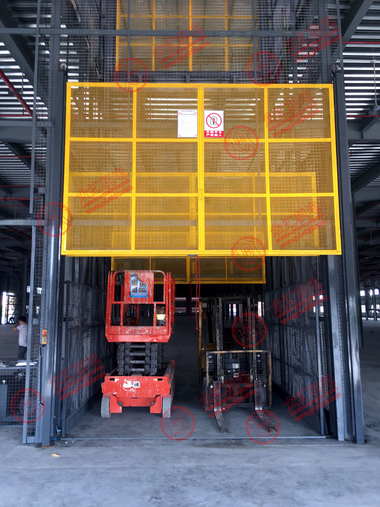 最大承載30噸,實現(xiàn)多點控制,上下樓層互動聯(lián)鎖,達(dá)到安全使用要求;提升方式采用旁置油缸或雙側(cè)式油缸,運行平穩(wěn)、噪聲小、維修方便、使用壽命較長;具有緊急制動功能,停電時可手動下降,方便、快捷、實用;地坑深度一般,頂層高度不受限制,可根據(jù)現(xiàn)場環(huán)境定做使用;層門可貫通,廠房內(nèi)外可相互戳開,方便、節(jié)省空間。