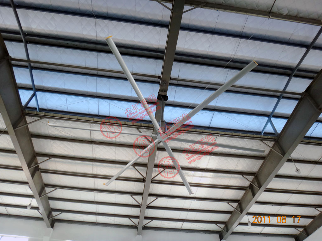 HVLS(High Volume – Low Speed),大風(fēng)量低轉(zhuǎn)速)風(fēng)機,一種直徑達7.3米的巨大吊扇!應(yīng)用空氣動力學(xué)原理和先進工藝制造的流線型扇葉,僅用1.5KW或更小的功率就可以驅(qū)動大量的空氣,產(chǎn)生超大面積的自然微風(fēng)系統(tǒng),起到通風(fēng)和降溫的雙重功能。比起傳統(tǒng)的暖通空調(diào)和小型的高速風(fēng)機,它有無可比擬的應(yīng)用優(yōu)勢,堪稱高大空間通風(fēng)降溫的完美解決方案。