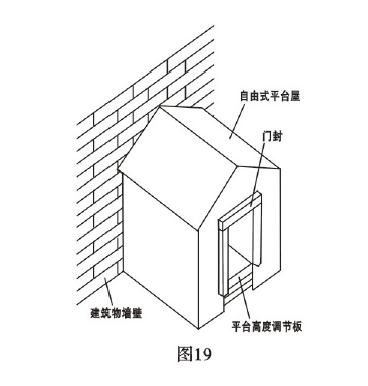 當(dāng)建筑物內(nèi)部空間有限,無法設(shè)置裝卸平臺,而外部環(huán)境非常寬闊,則可在建筑物外設(shè)計自由式平臺,與建筑物連接在一起。(圖19)